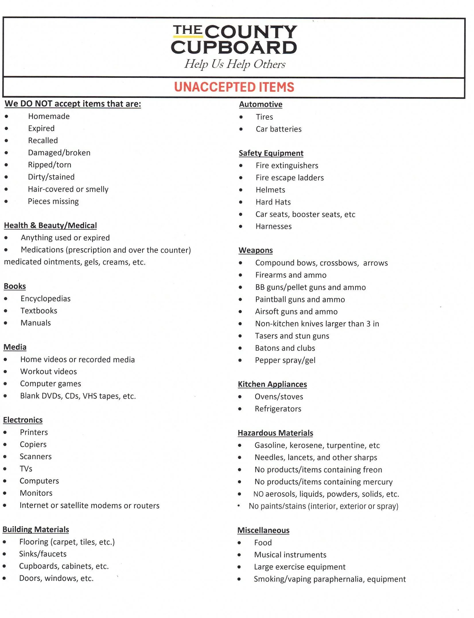 *Furniture items may or may not be accepted based on space available in the store and quality of the items.